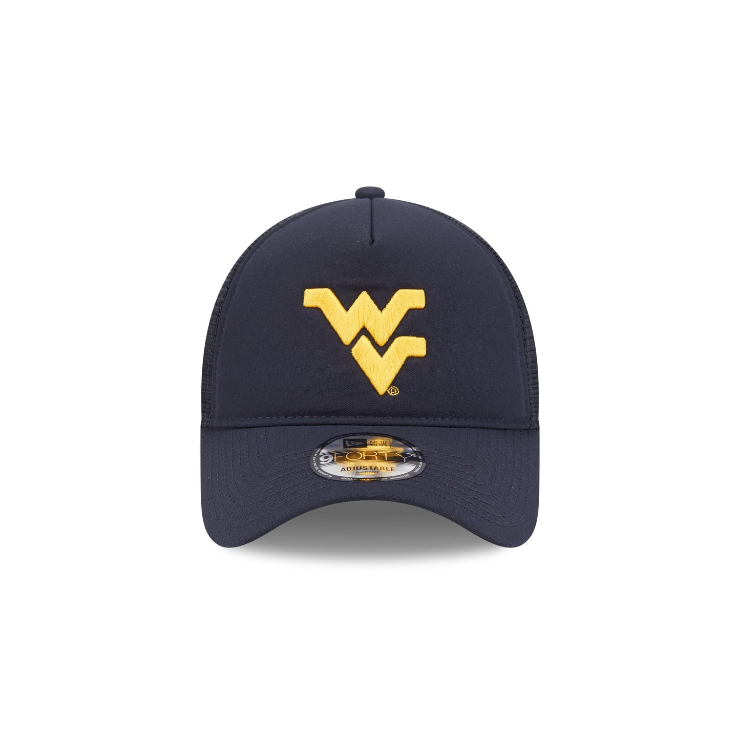 The West Virginia Mountaineers Go-To 9FORTY A-Frame Trucker features an embroidered Mountaineers logo at the front panels with a snapback closure at a mesh rear.